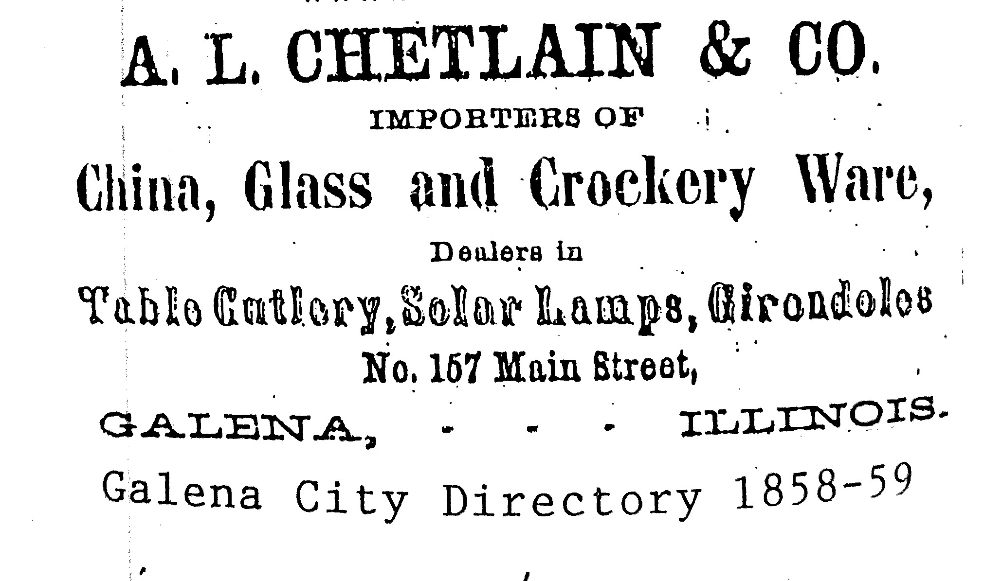 Brevet Major General of U.S. Volunteers, Augustus Louis Chetlain, was born in St. Louis, Mo. on Dec. 26, 1824. His family moved to Gratiot Grove, WI in April of 1826, when he was two years old. His father became a miner, and later, a farmer. Around the time of the Blackhawk war the family moved to Galena, at 11661 West Chetlain Lane. Chetlain traveled to Elyria, Ohio, to marry Emily Tenney in 1847. They had a son, and Emily passed away eighteen months later. Chetlain established a glassware and crockery business in 1852, at 157 Main Street in Galena. By 1859 had accumulated a small fortune. He sold his interest in his store to his chief clerk, and spent the summer traveling in Europe for "rest and relaxation," as Chetlain put it.