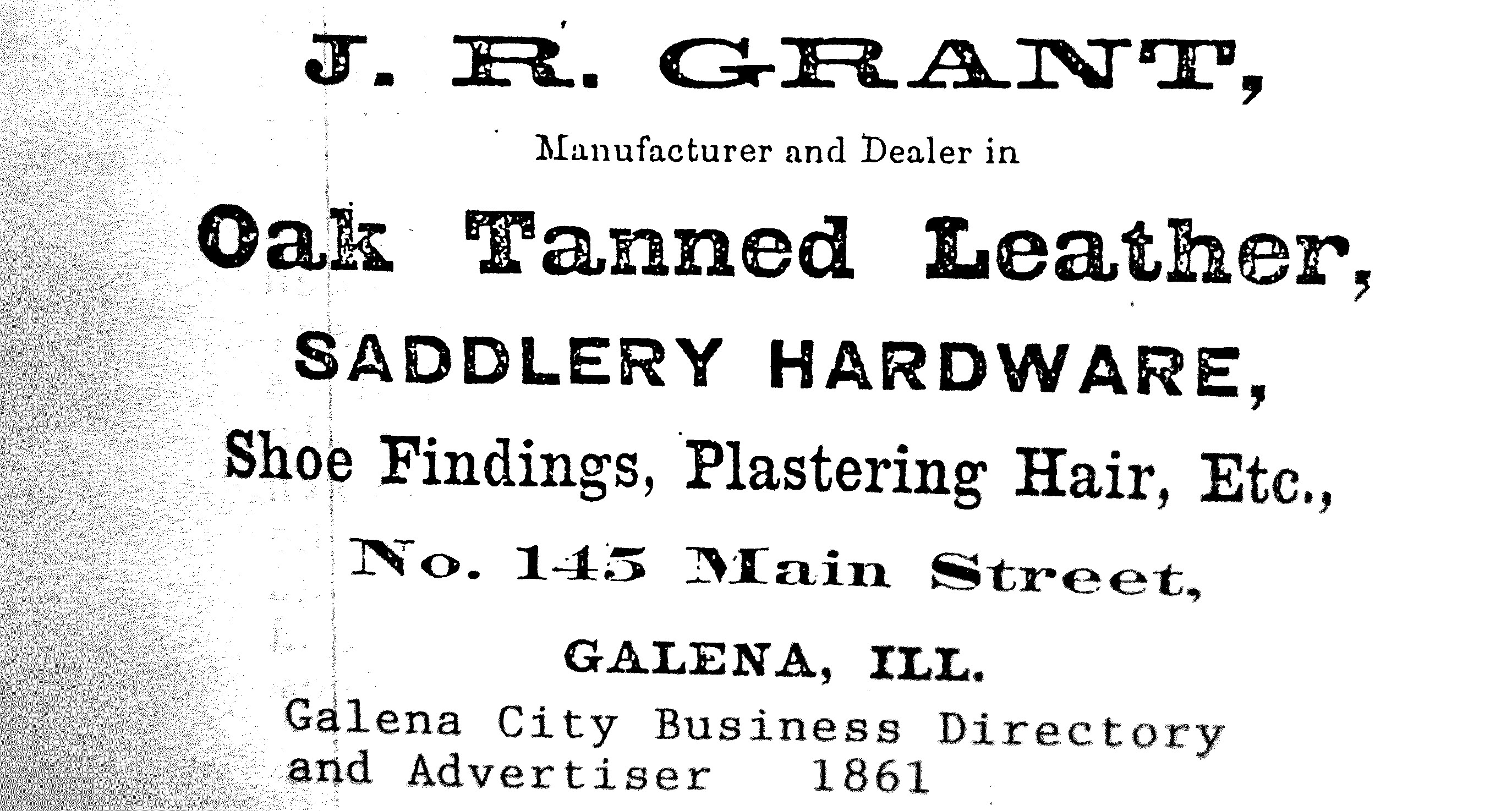 Two of Ulysses brothers worked for their father at J.R. Grant Leather in Galena at 145 Main Street. Samuel was in charge and also serviced the three Satellite locations upriver. Orville worked in the Galena store. By 1860 Samuel was dying of tuberculosis. Jesse invited Ulysses to come and partner with them. In April 1860, Grant moved to Galena with his wife and four children to help. They rented a new brick home at 121 High Street.