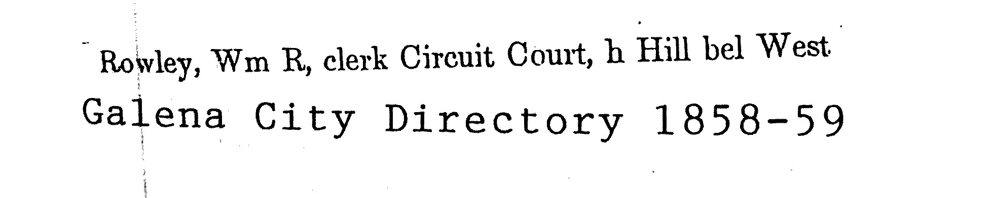 Rowley married Elizabeth Miller in 1847 and had four children. It was around this time that Rowley was appointed Assessor and Collector for Jo Daviess County. Between 1847 and 1861s, Rowley held several other county government positions like Deputy Circuit Clerk and Sheriff. By 1861 the Rowelys were living at 515 Hill Street in Galena.
